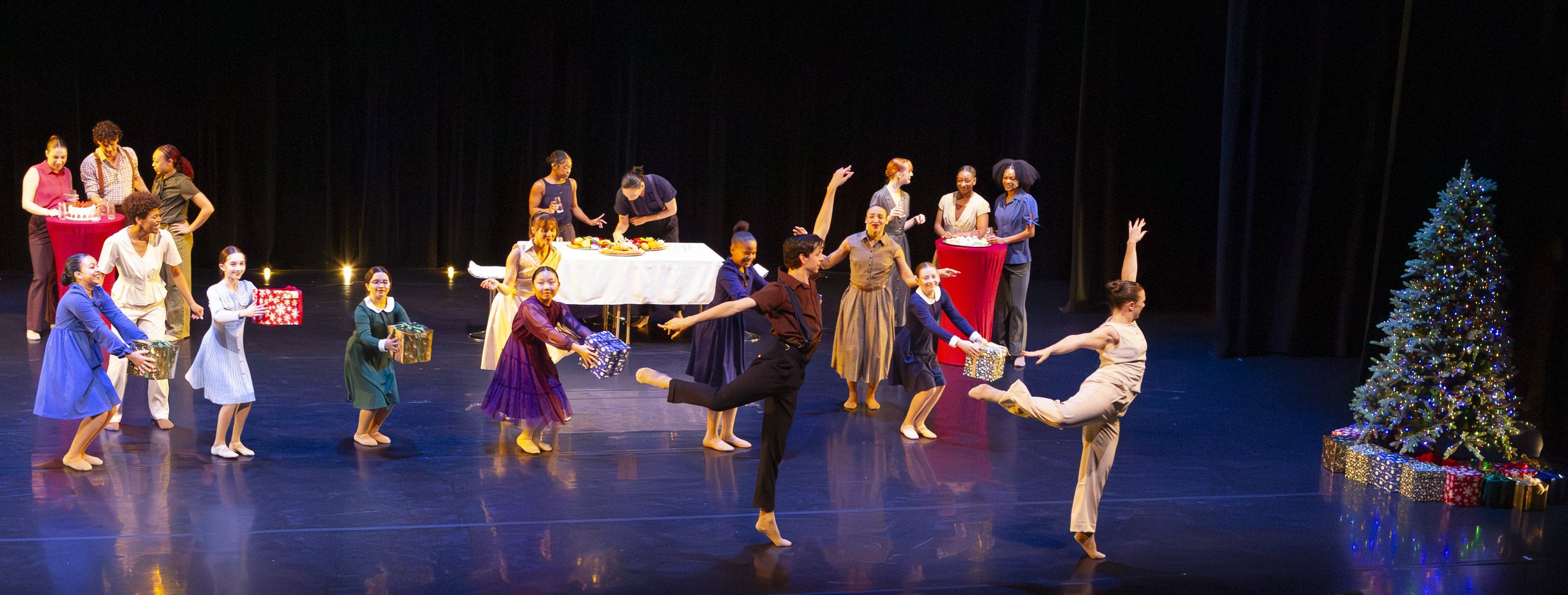 South Chicago Dance Theatre (SCDT) is in season 9 and continues to dance close to the edge. Founder Kia S. Smith choreographed Lamentations of Peace with a narrative of the emotions that arise during the Christmas season in a world premiere at the Columbia College Dance Center. In Lamentations for Peace, we are introduced to a typical American family: Mom (Mya Bryant), Dad (Jack Halbert), Adult Son (Brodie Wolf), and Young Brodie (Peter Westergaard). The mother and father are going through a crisis in their marriage, but put on a happy front at a holiday party of friends and their children.